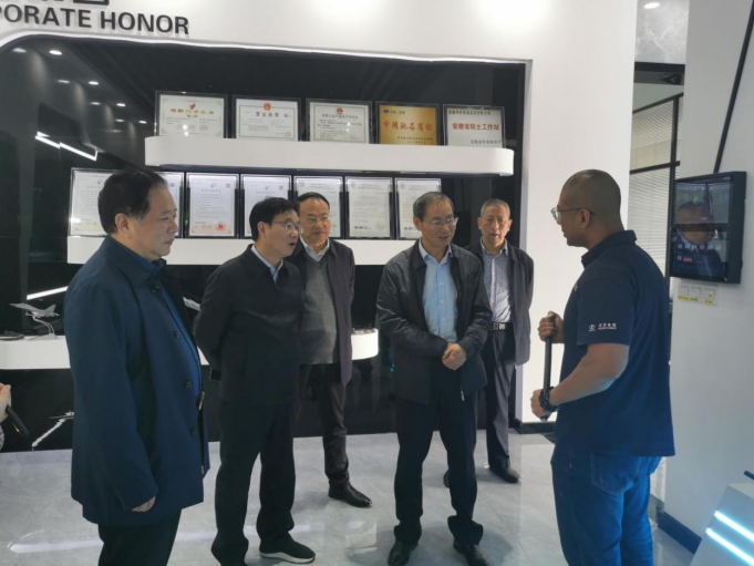 奚南山一行參觀公司展廳,并深入生產車間,詳細了解企業產品研發、項目建設、市場應用等情況。