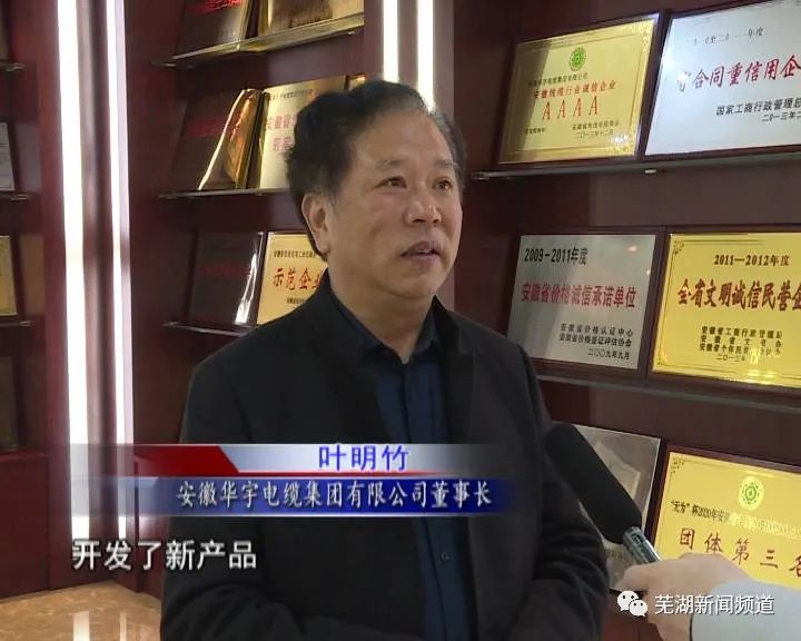安徽華宇電纜集團有限公司董事長 葉明竹:電纜在我們無為市是第一支柱產業,電纜做好了,我們蕪湖市的經濟也帶動了。作為我們企業、電纜人,你還要實現彎道超車,走特種電纜道路,走我們的專長,走專精特新道路。
